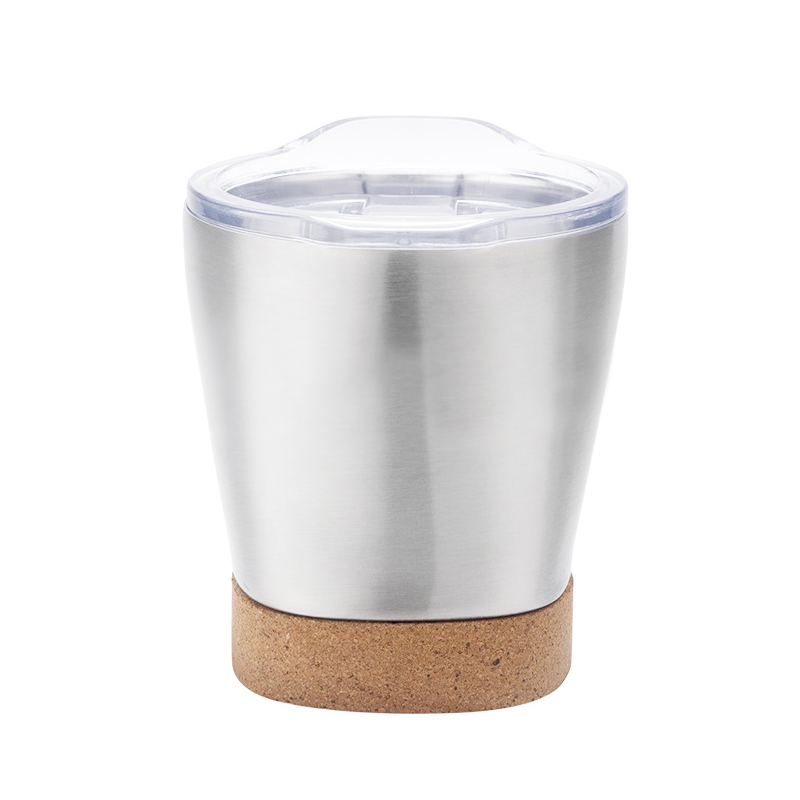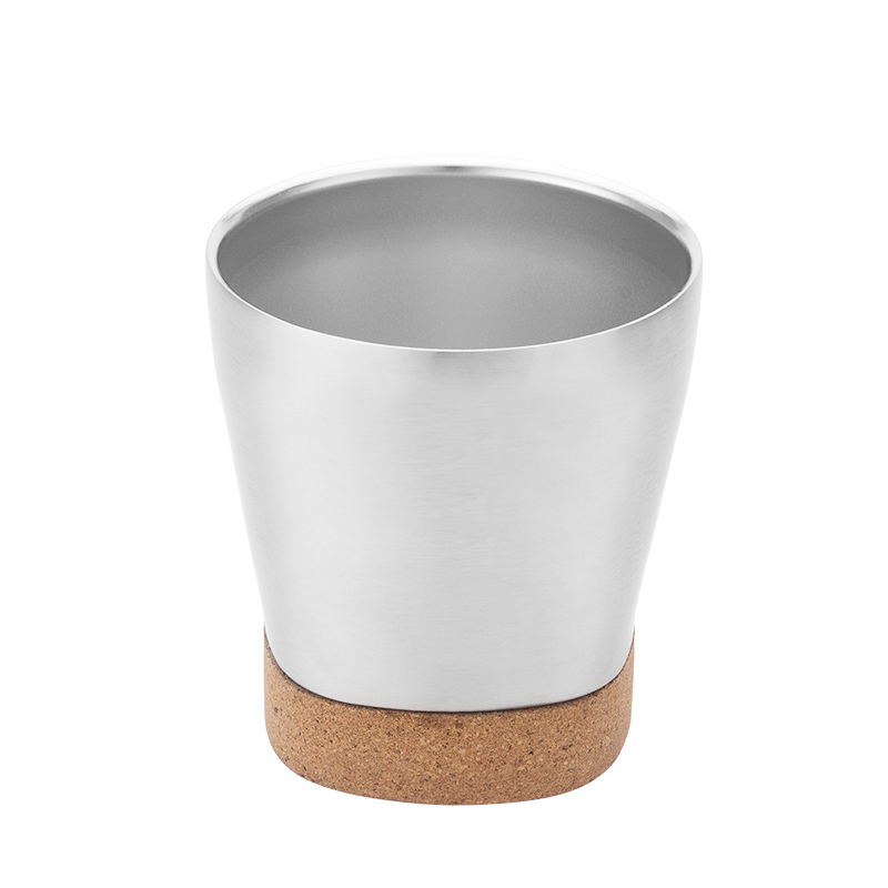 Эта чашка, созданная из нержавеющей стали, имеет гладкий и плавный силуэт с округлыми контурами. Его основание включает в себя мягкую коричневую пробку, которая создает поразительный контраст с корпусом металлической чашки как в материале, так и в цвете. Этот дизайн не только добавляет естественную, теплую атмосферу, но и повышает общую эстетику со сложной простотой, что делает его достаточно универсальным, чтобы дополнить различные предпочтения в стиле.