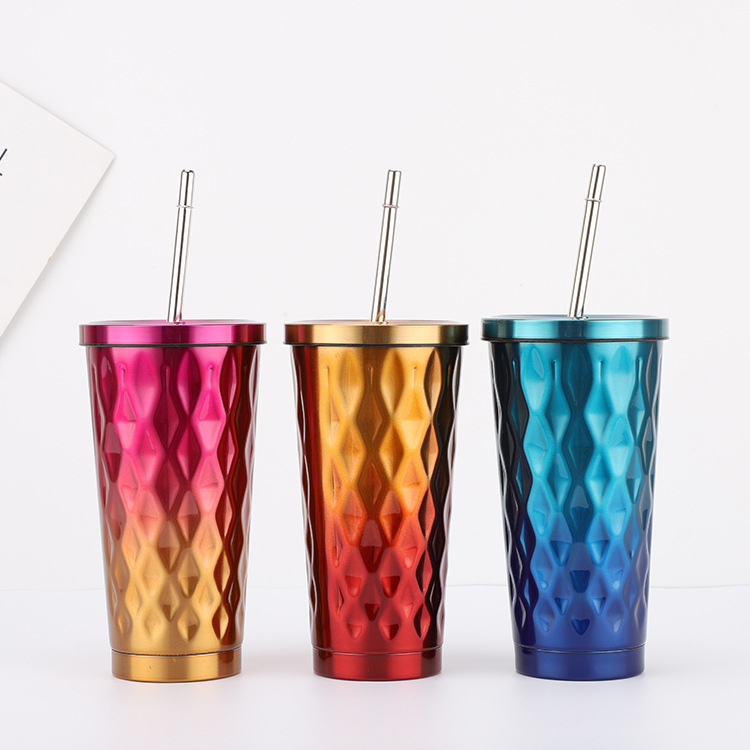 Кто сможет устоять перед соломенной чашкой, которая «светится в руке, как ювелирное украшение, и работает как профессионал»? Дизайн с ромбовидным узором излучает трехмерную изысканность, а градиентная версия демонстрирует палитру художественного таланта. Однотонная модель олицетворяет минималистскую элегантность. Сочетайте его с любым нарядом, и вы мгновенно излучаете стиль. Более того, конструкция из нержавеющей стали 304 обеспечивает безопасное хранение кофе, чая с молоком и холодных напитков, а вакуумная изоляция сохраняет напитки идеально охлажденными. Благодаря соломинке из нержавеющей стали и герметичной крышке, он гигиеничен и герметичен. Возьмите его с собой в сумку для спонтанных прогулок. Благодаря стилю и содержанию эта чашка заставит каждого пользователя упасть с ног на голову!