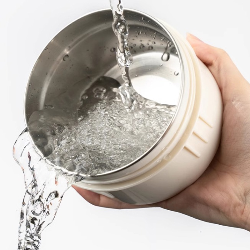 Внутренний резервуар из нержавеющей стали имеет гладкую поверхность, которую нелегко приклеить остатки пищи и масляные пятна, и его легко стереть. Его можно легко очистить путем промывки чистой водой или с помощью обычного моющего для мытья посуды.