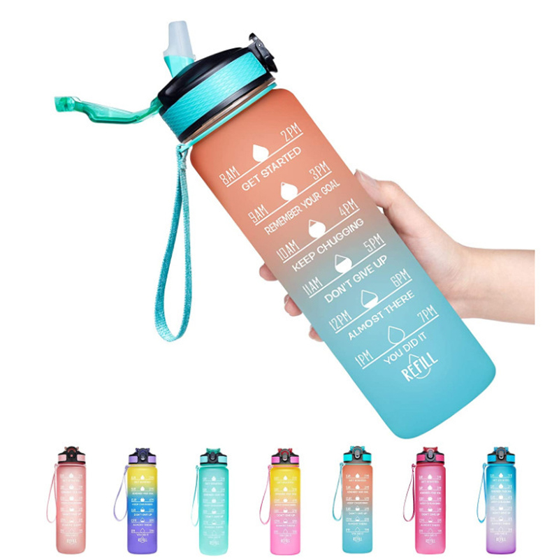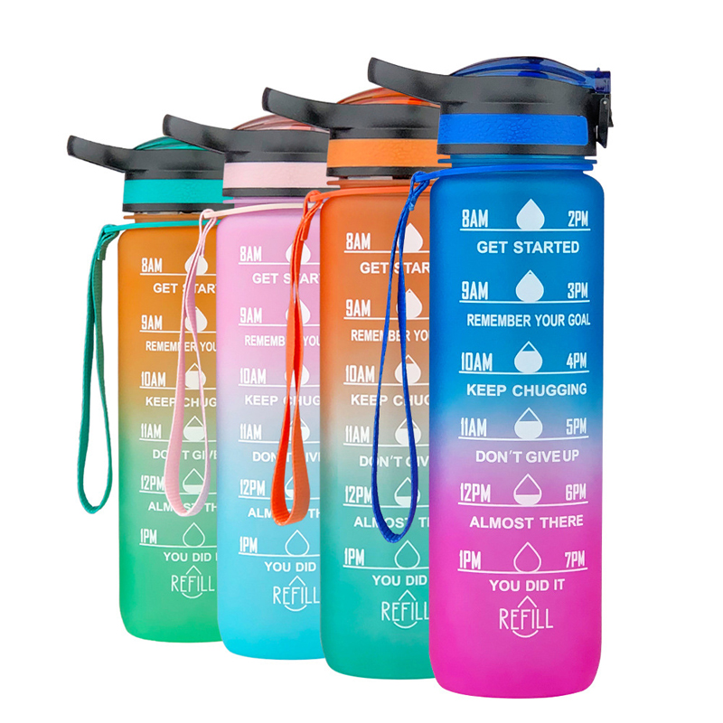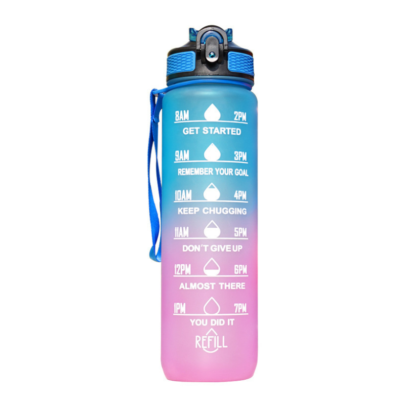 Эта спортивная бутылка для воды объемом 1000 мл сочетает в себе черты пластиковой космической чашки и дорожного кувшина с градиентным цветовым дизайном. Его стильный градиентный внешний вид делает его идеальным для ношения во время активного отдыха, удовлетворяя как ежедневные потребности в гидратации, так и требования физических упражнений.