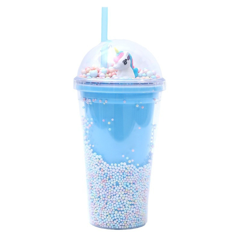 Куполообразная крышка затмевает всеобщее внимание: выбирайте между мерцающей радугой (усыпанной звездным блеском) или крошечным трехмерным единорогом (укрытым пастельными бусами) — это все равно, что носить с собой мини-сказку, куда бы вы ни пошли. Двойные стенки чашки наполнены плавающими пастельными бусинами и блестками, поэтому она переливается при каждом движении (никакого беспорядка, просто волшебство!).