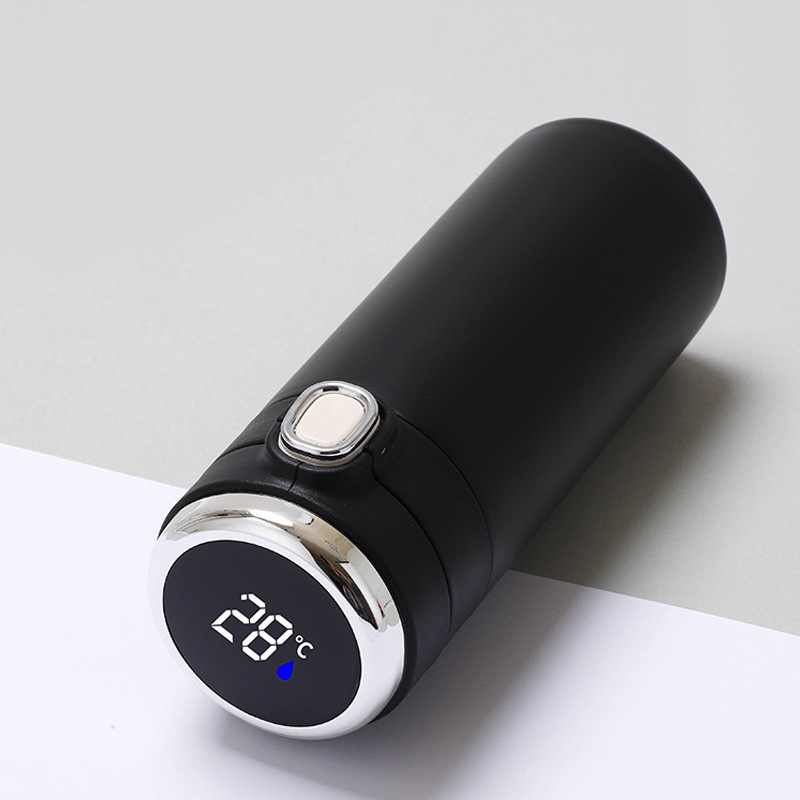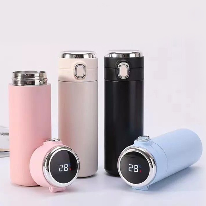Эти термосовые колбы бывают разных очаровательных цветов, в том числе светло -голубой, розовый, бежевый и черный. Одна из их выдающихся функций - встроенный - в температурном дисплее. Как показано на рисунке, вы можете легко проверить температуру жидкости внутри, с четко видимыми показаниями, такими как 56 ° C и 28 ° C.