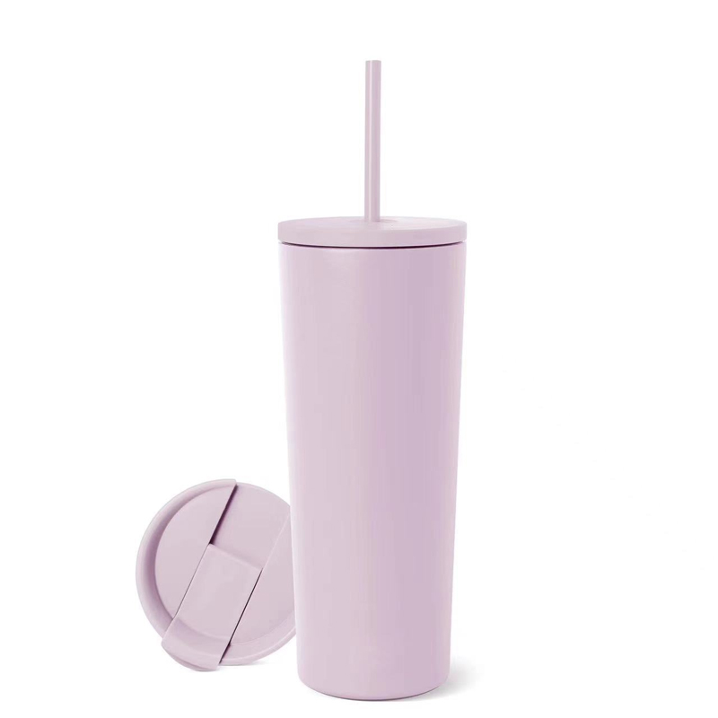 Чашка может похвастаться яркими цветовыми вариантами, включая светло -розовый, оранжевый, бледно -фиолетовый, светло -зеленый и розовый красный, обслуживающий разнообразные эстетические предпочтения. Его тонкий дизайн прямого тела имеет соответствующую крышку соломенной подрыва в той же цветовой схеме, создавая гладкое и стильное сочетание красоты и функциональности. Эта чашка, идеально подходящая для ежедневных поездок на работу, так и для работы в офисе, обеспечивает практичность, не жертвуя стилем.